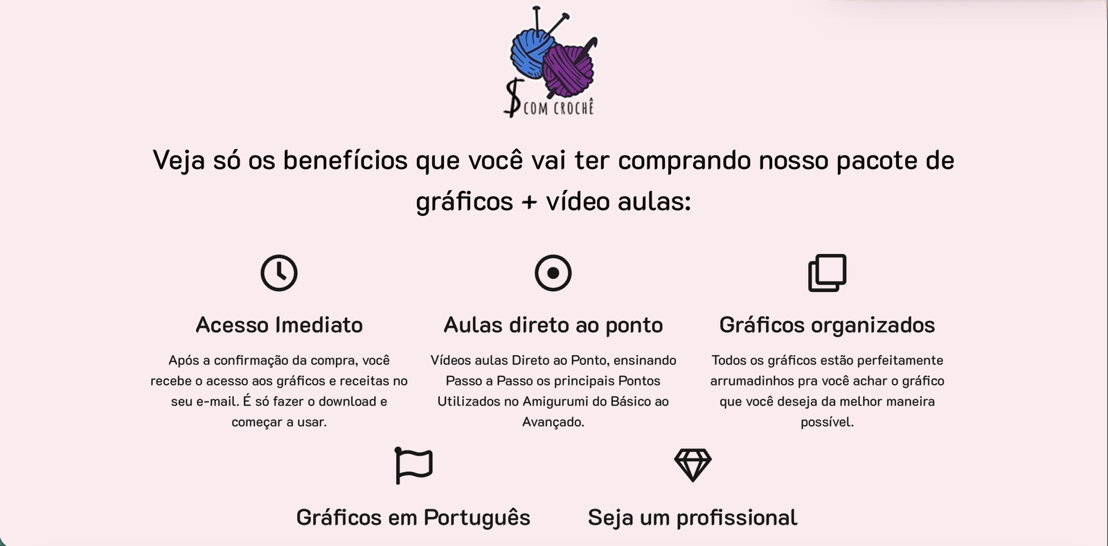 Além de valorizar o aprendizado progressivo, o curso também reforça os benefícios do crochê como uma atividade relaxante e criativa.